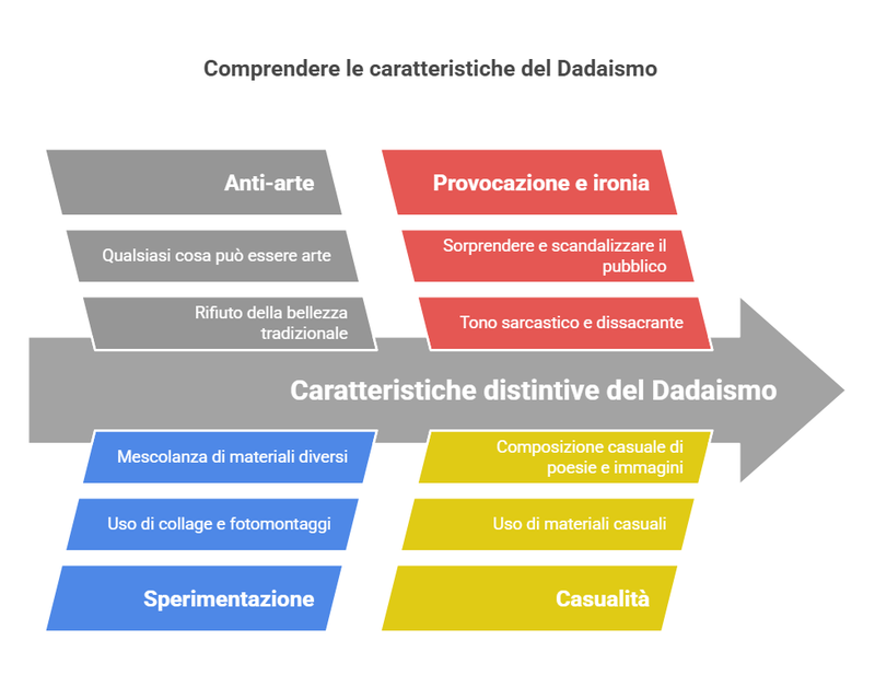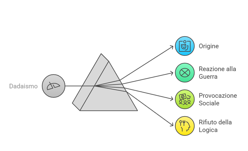 Il Dadaismo è un movimento artistico e culturale nato durante la Prima Guerra Mondiale, intorno al 1916, a Zurigo, nel famoso Cabaret Voltaire. Fondato da artisti e intellettuali che cercavano di reagire al clima di distruzione e insensatezza della guerra, il Dadaismo si propone come una forma di provocazione radicale nei confronti della società e delle convenzioni artistiche. Il termine "Dada", scelto quasi casualmente, richiama il balbettio infantile e simboleggia il rifiuto delle logiche razionali e del linguaggio convenzionale.