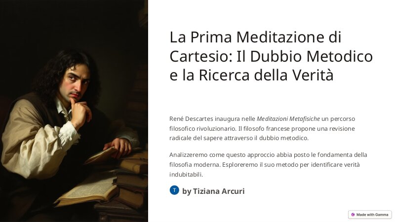 Nella Prima Meditazione delle Meditazioni Metafisiche, Cartesio inaugura un'indagine filosofica volta a stabilire un fondamento certo per la conoscenza. Consapevole dell'incertezza delle opinioni ereditate dalla tradizione, egli propone un metodo radicale di revisione critica del sapere: il dubbio metodico. Il suo intento non è quello di cadere nello scetticismo assoluto, bensì di individuare una verità incontrovertibile su cui edificare il sapere.