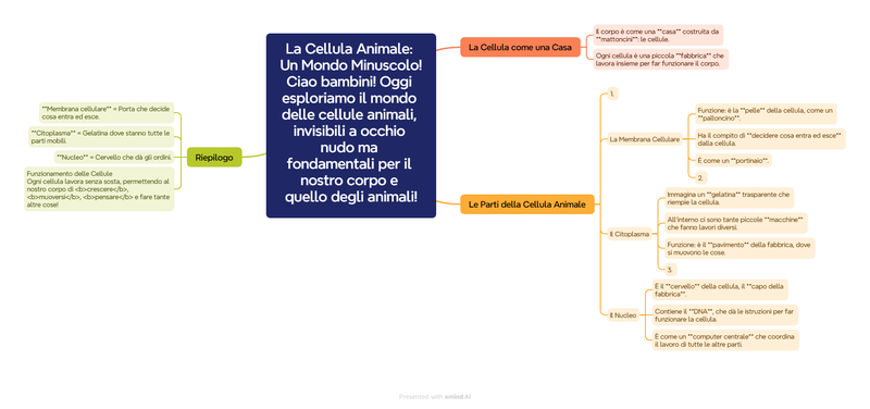Ciao bambini! Oggi facciamo un viaggio in un mondo piccolissimo, così piccolo che non possiamo vederlo a occhio nudo. Parliamo della cellula animale! Immaginate che il vostro corpo sia come una casa fatta di tantissimi mattoncini. Questi mattoncini, che sono le parti più piccole del nostro corpo, sono proprio le cellule! Anche tutti gli animali, dal gatto al pesciolino, sono fatti di milioni di queste piccole cellule.