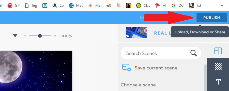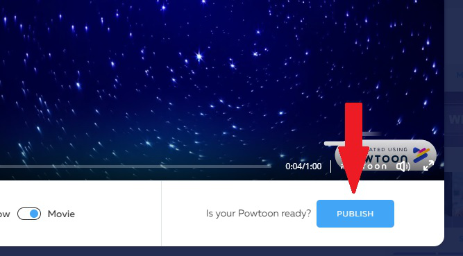 Step 1: once logged in Powtoon, open your video in EDIT mode and click on PUBLISH up on the right