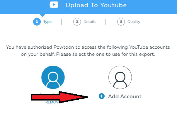 Step 4: Click on ADD ACCOUNT to connect your Powtoon account with the YouTube account of your Class