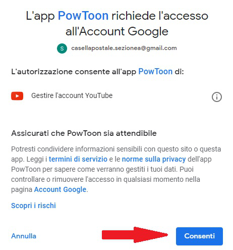 Step 8: let Powtoon connect to the YouTube account of your Class