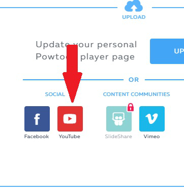 Step 3: on the following Upload page, click on the YouTube button