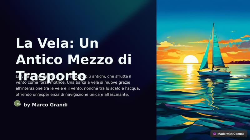 La vela è uno dei mezzi di trasporto più antichi, che sfrutta il vento come forza motrice Una barca a vela si muove grazie all'interazione tra le vele e il vento, nonché tra lo scafo e l'acquaIl vento