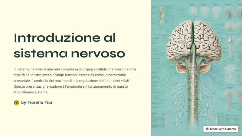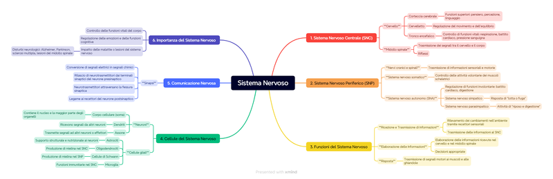 Il sistema nervoso è una rete complessa di cellule e fibre che coordina le azioni e le reazioni del corpo e trasmette segnali tra diverse parti del corpo. È suddiviso in due parti principali: il sistema nervoso centrale (SNC) e il sistema nervoso periferico (SNP).